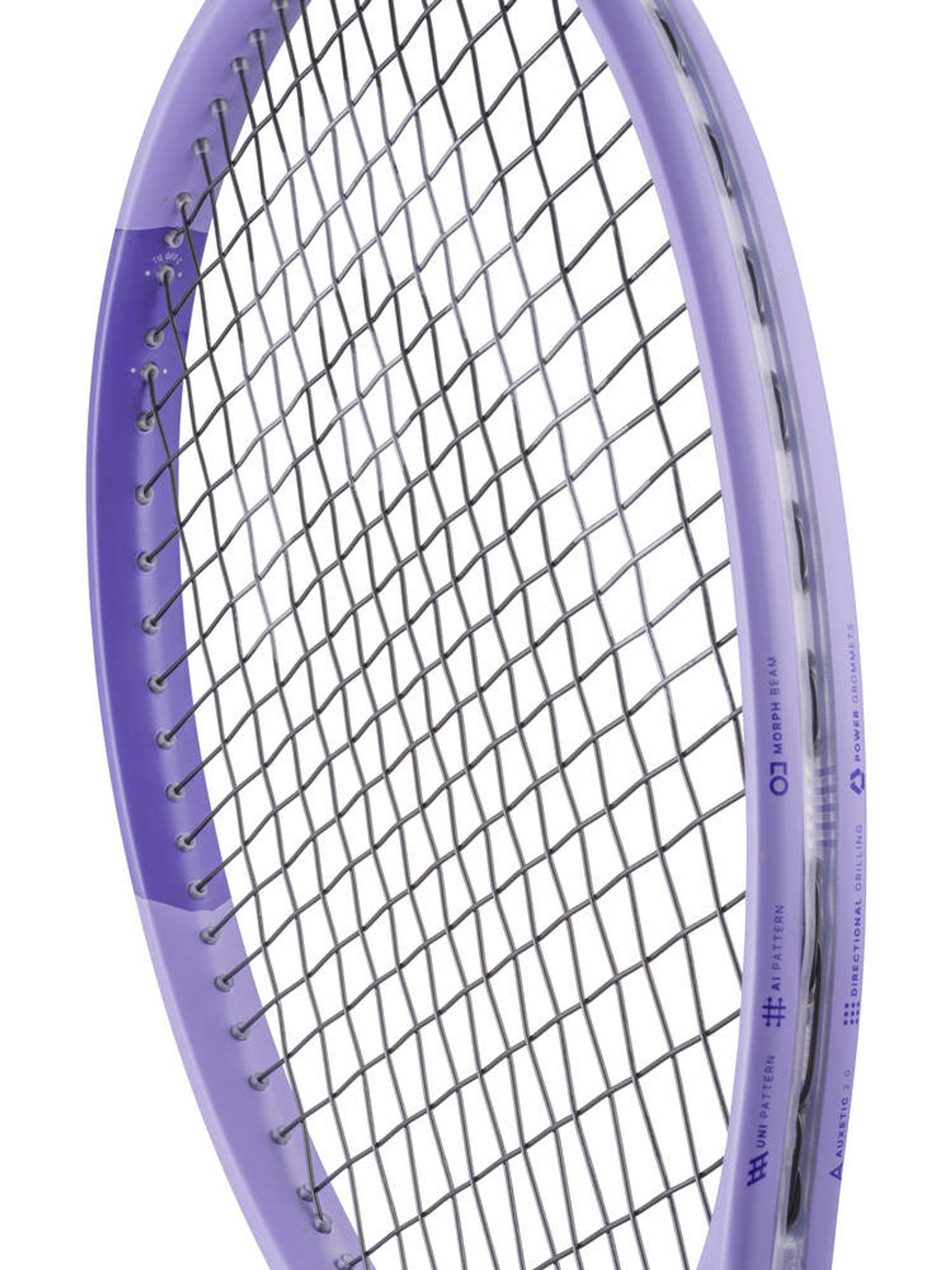 - Directional Drilling und Power Grommets – mehr Saitenbewegung, größerer Sweetspot und zusätzlicher Komfort beim Ballkontakt